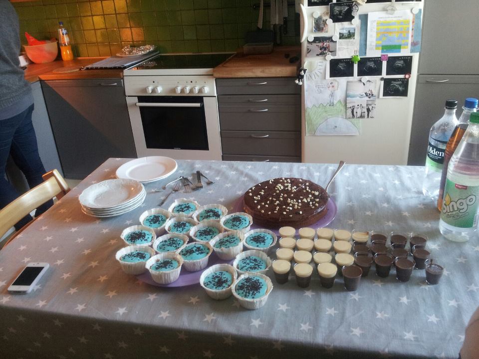 Humøret var på topp, og vår veldig gravide venninne koste seg. Vi fikk servert taco, som jeg ikke var med på å forberede, da jeg gav meg selv i oppdrag å sitte i sofaen og spise potetgull. Har litt dårlig samvittighet for det, men jeg hadde nok vært ganske ubrukelig på kjøkkenet. Det smakte med mat, og etterpå var det sjokoladekake, cupcakes og sjokoladepudding med vaniljesaus. Hadde ikke laget noe av dette heller.