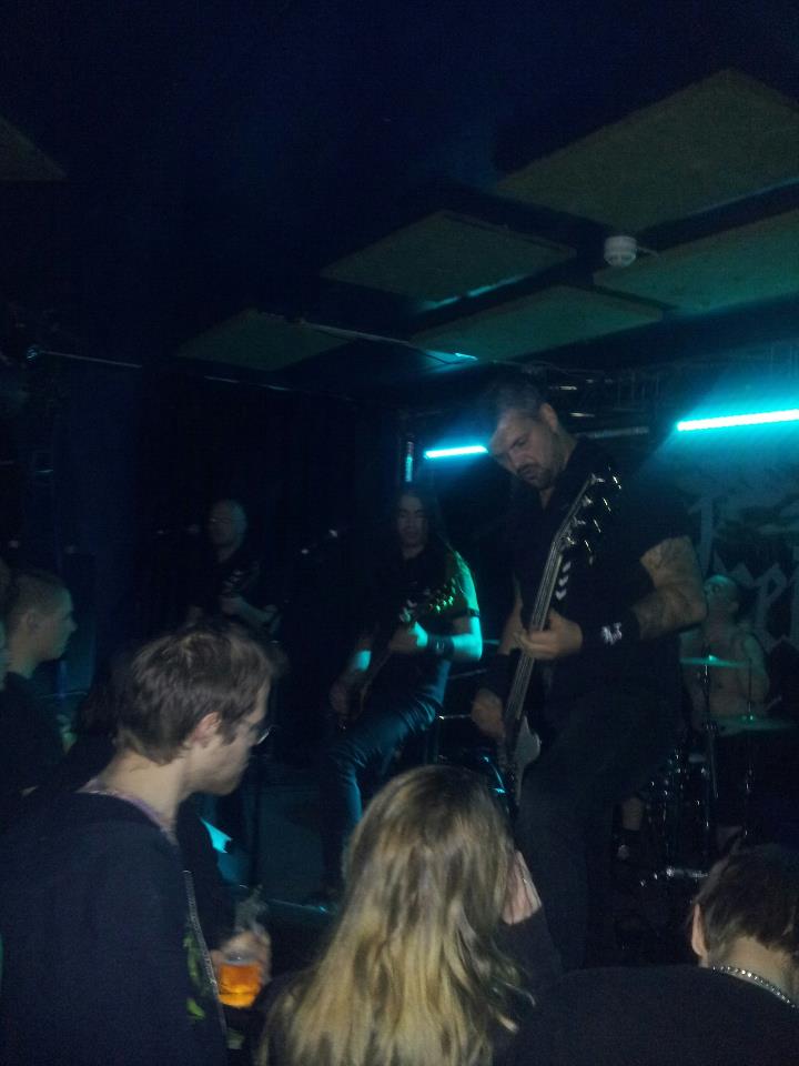 Etter litt hviskende skåling, det var quizz, braket det løs, bokstavelig talt. Det var god stemning og vi møtte på folk vi kjente. Min venninne sa at dette i utgangspunktet ikke var musikk hun pleide å høre på, men stemningen, og øl, gjorde nok noe med henne, for etter en stund var hun helt med. Vi flyttet oss langt frem og min frustrasjon vokste sakte for hver sang som kom. Hvor ble det av «Dæns»? Jeg kan vel ha kommet i skade for å rope :»Dææææææns!»et par ganger, men akk og ve, til ingen nytte. Så var det sceneskifte, og Vreid entret scenen. Jeg hadde fått høre at disse gutta er store i utlandet, litt som svartmetallens svar på Metallica. Det viste seg at noe av det var ganske hardt og mørkt, men så inne i mellom kom det noe veldig kult.