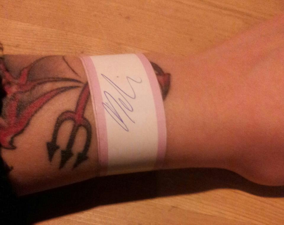 Etter konsertene, kjøpte jeg en t-skjorte med Dundebeistlogoen og satte meg som mål å få den signert. Det fikk jeg.