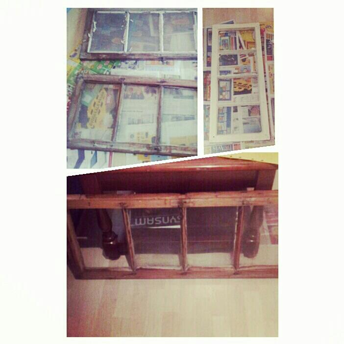 Jeg vasket, pusset og malte for så å pusse litt på det ferdige resultatet, slik at det ble litt shabby chic. Videre brukte jeg vindusrutene som bilderammer. Bilder av hytta gjorde seg i den ene ruten, mens diktet :»Berceuse» av Andre`Bjerke gjorde seg i et annet. Dette er et av mine absolutt favorittdikt, trist, men samtidig veldig fint.