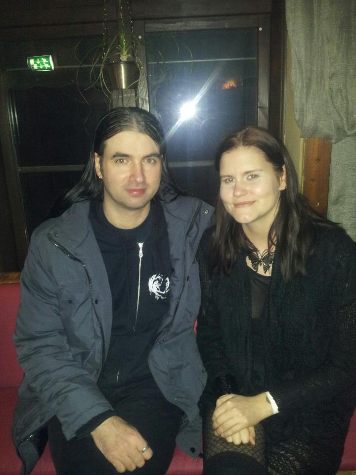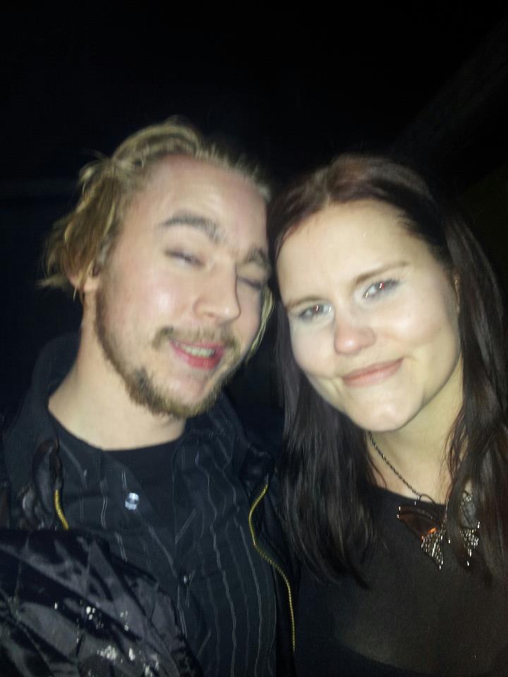 Ettersom både Dunderbeist og Vreid-medlemmene var på Felix etter konserten, sosialiserte vi litt med dem. Hyggelige mennesker. Her slår jeg av en prat med et langhåret Vreid-medlem fra Sogndal, som på sett og vis minner meg om Grim, kjæresten til Nemi, ja rent bortsett fra at han ikke er tegnet da.