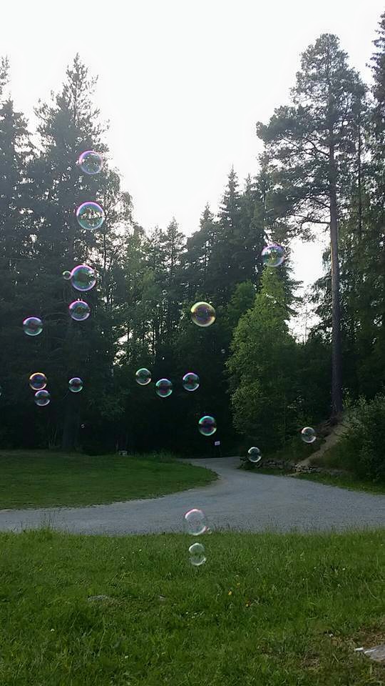 På pikniken hadde også, slik jeg ofte gjør, tatt med meg såpebobler. Det blir alltid litt artige bilder når man blåser bobler synes jeg.
