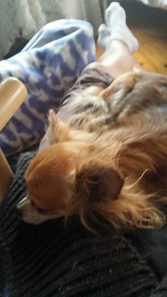 Tina hadde med seg Mira, som fikk utrolig mye kos og oppmerksomhet. Hun hoppet fra fang til fang, og jeg er ganske sikker på at den hunden aldri blir lei av kos.