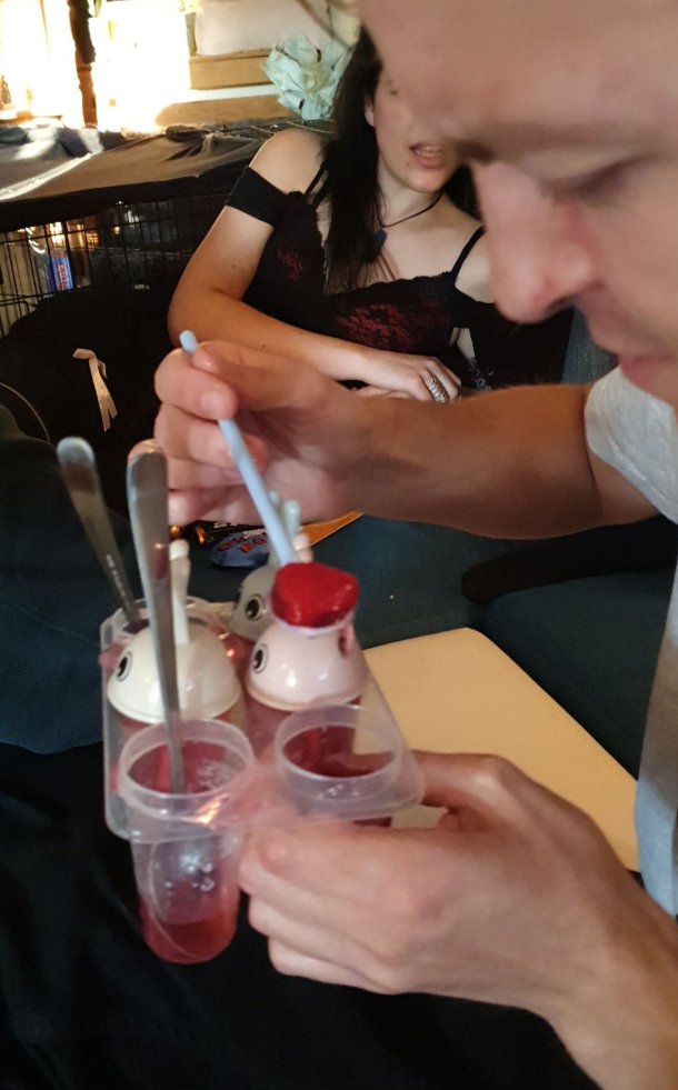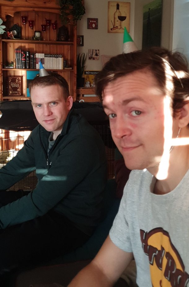 Det begynte å nærme seg tiden for at Simon var ferdig på jobb. Han hadde sluttet før, så mens vi snakket om han, dukket han opp som et troll i eske (et veldig koselig troll da).