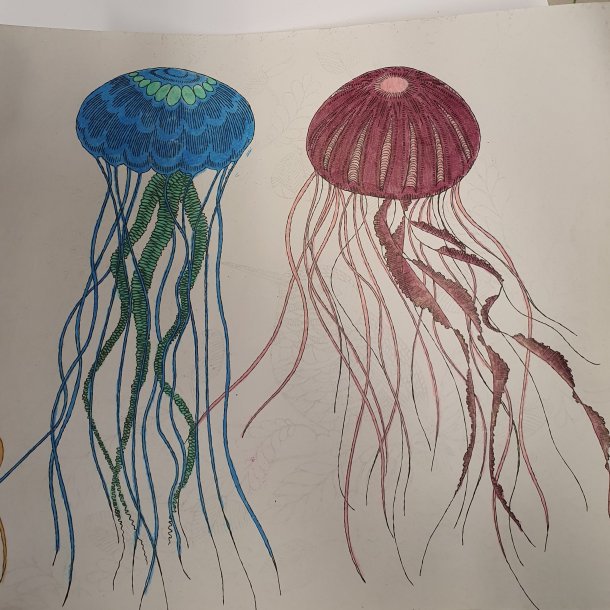 Her har jeg virkelig utnyttet den blå fargeblyanten. Det var bare en liten stump igjen etterpå.