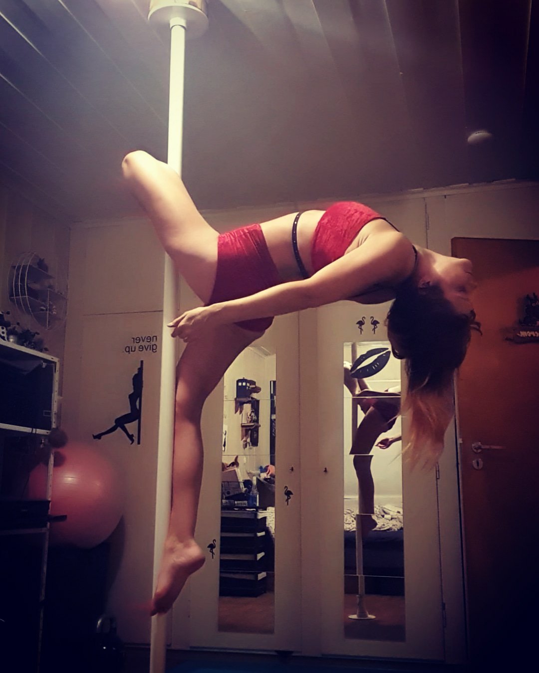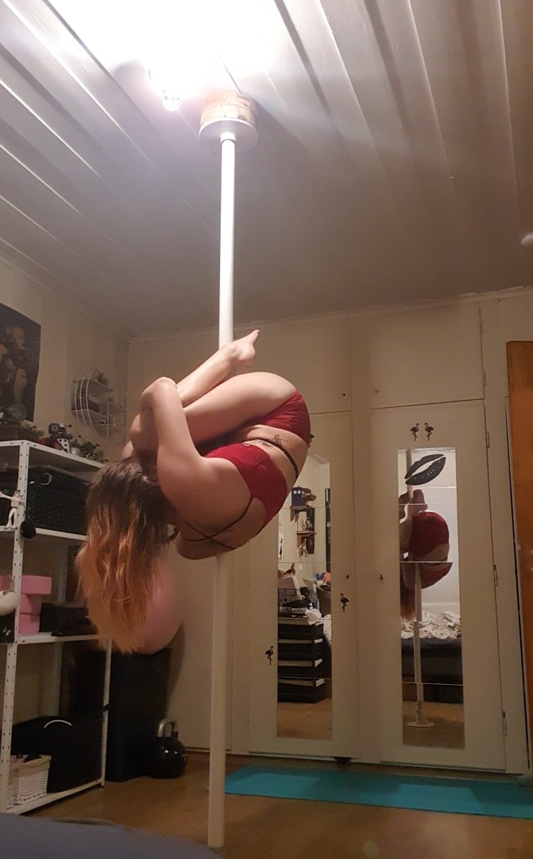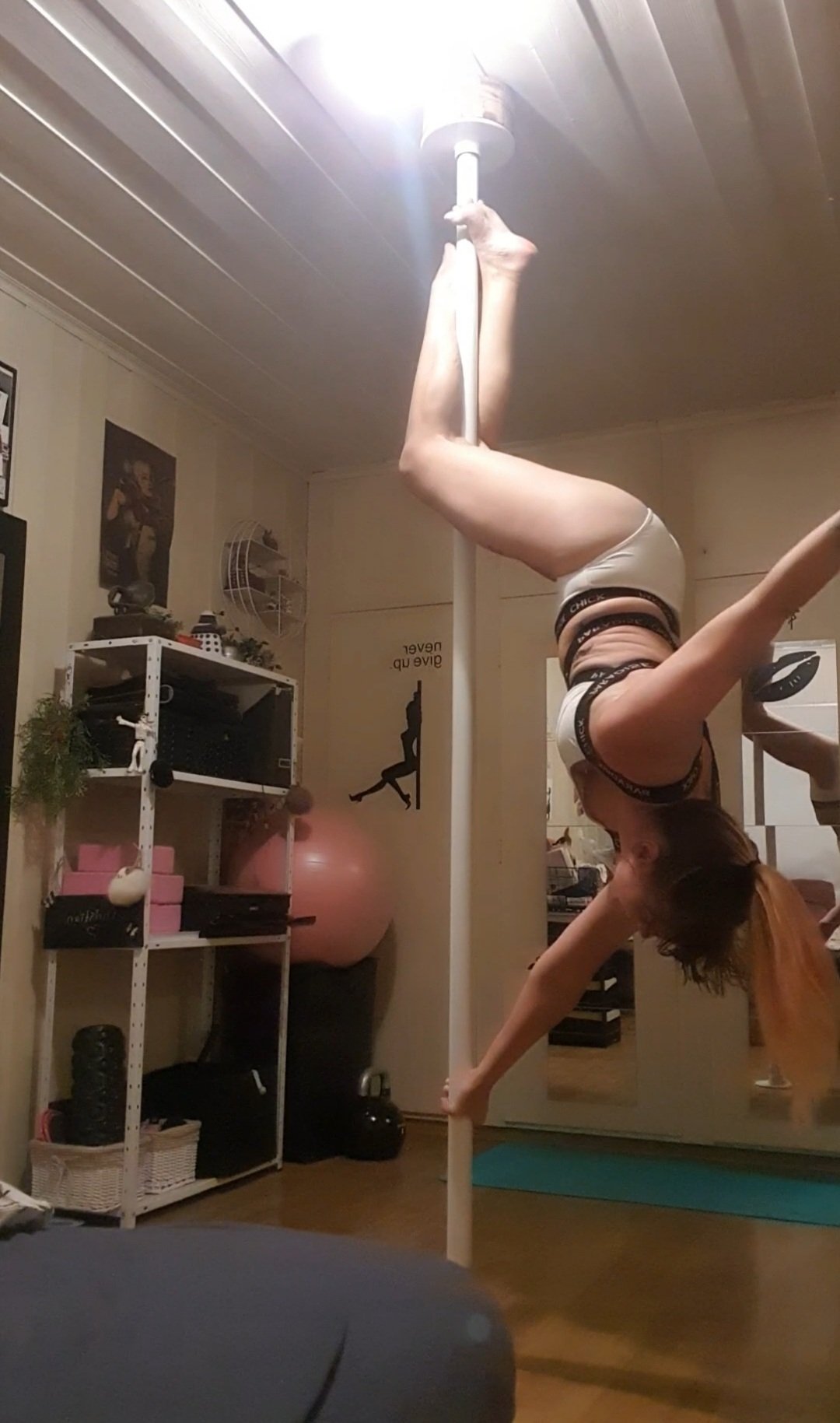 Øver på Caterpillar. Jeg ser at jeg må løfte hoftene enda mer opp. Det føles veldig rart å være i denne posisjonen. Jeg må øve på å føle meg trygg og komfortabel. Øve veldig MYE.