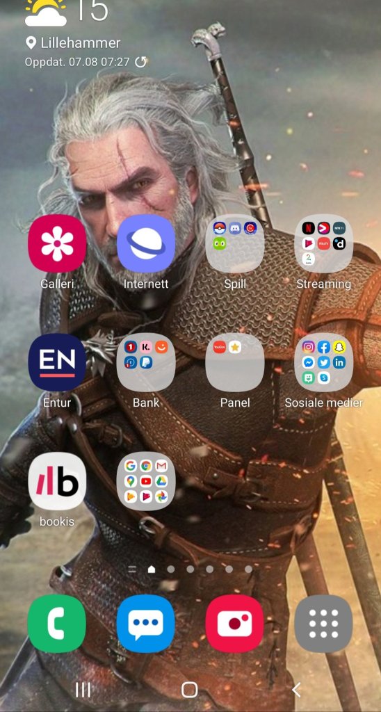 Bakgrunnsbildet på mobilen. Geralt i all sin prakt.