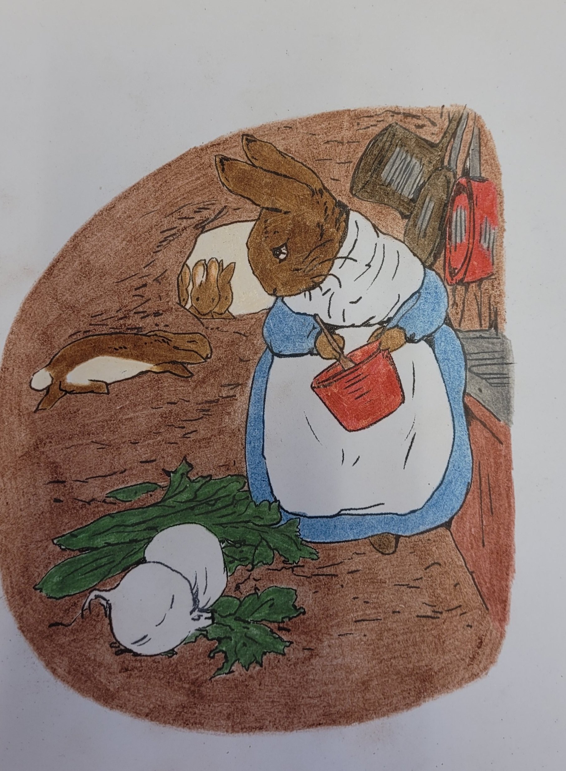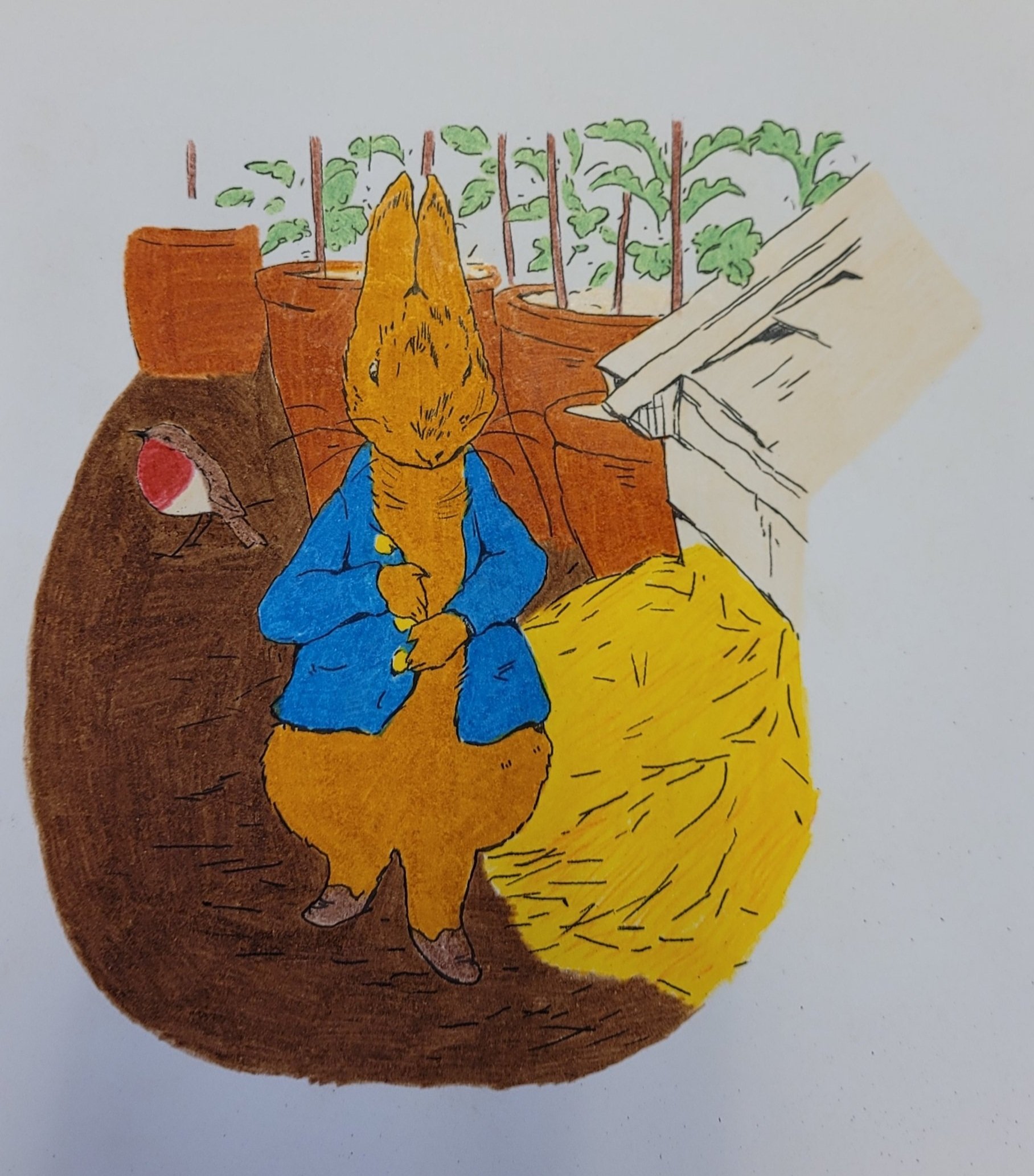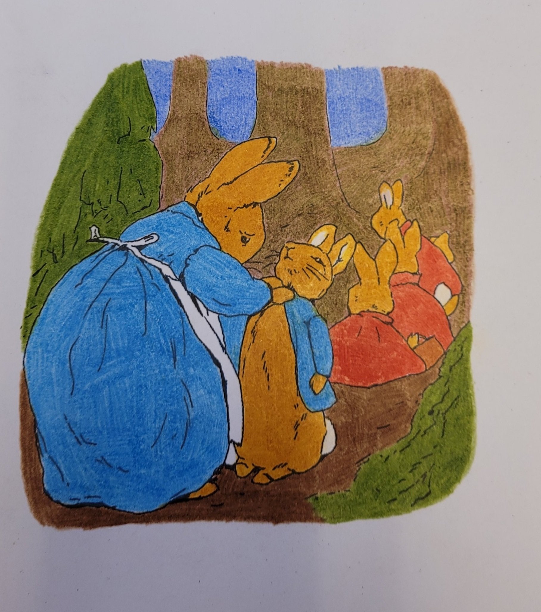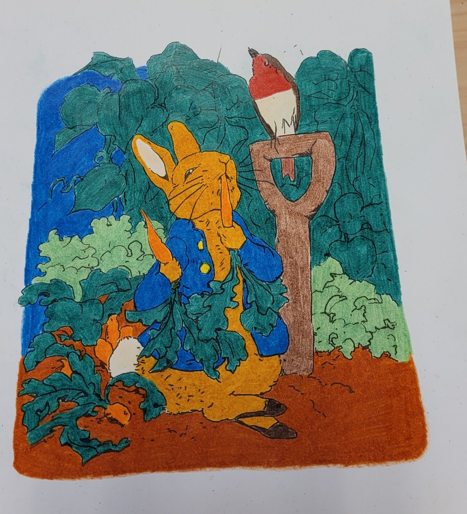Ja, jeg har fargelagt MYE. Jeg hadde to hefter med «Peter Rabbit «. Jeg har begynt på det andre nå. Tegningene har jeg klistret opp på jobb. Synes de pynter opp. Muligens ser det litt ut som om vi jobber i en barnehage, men det får så være 🐇.