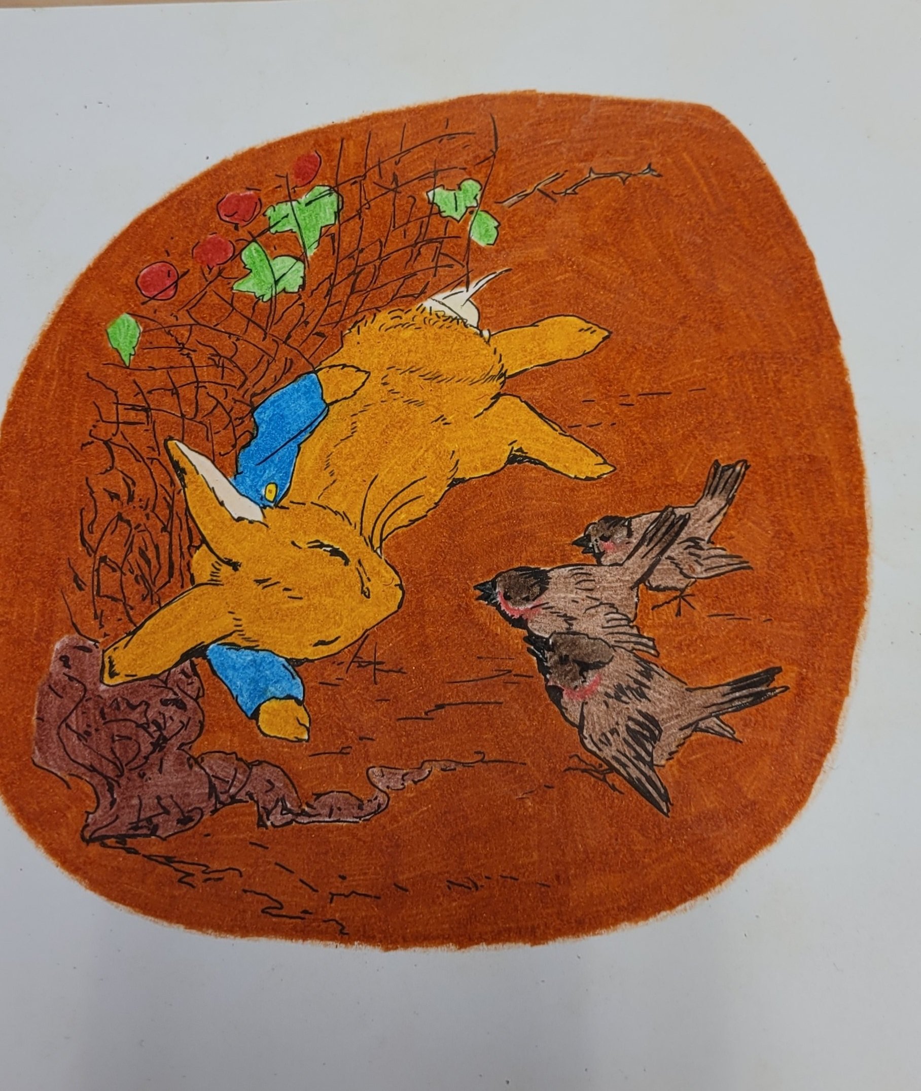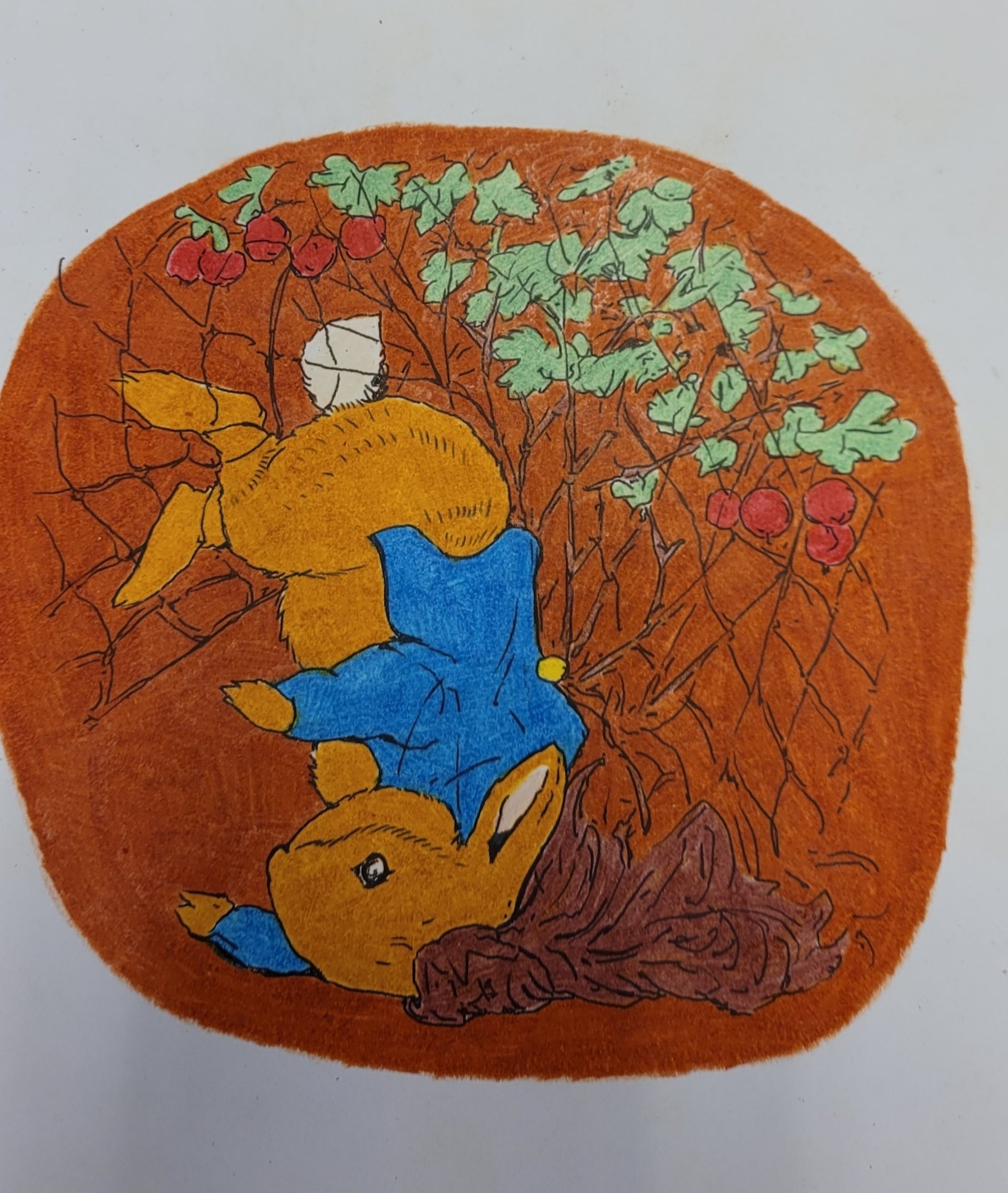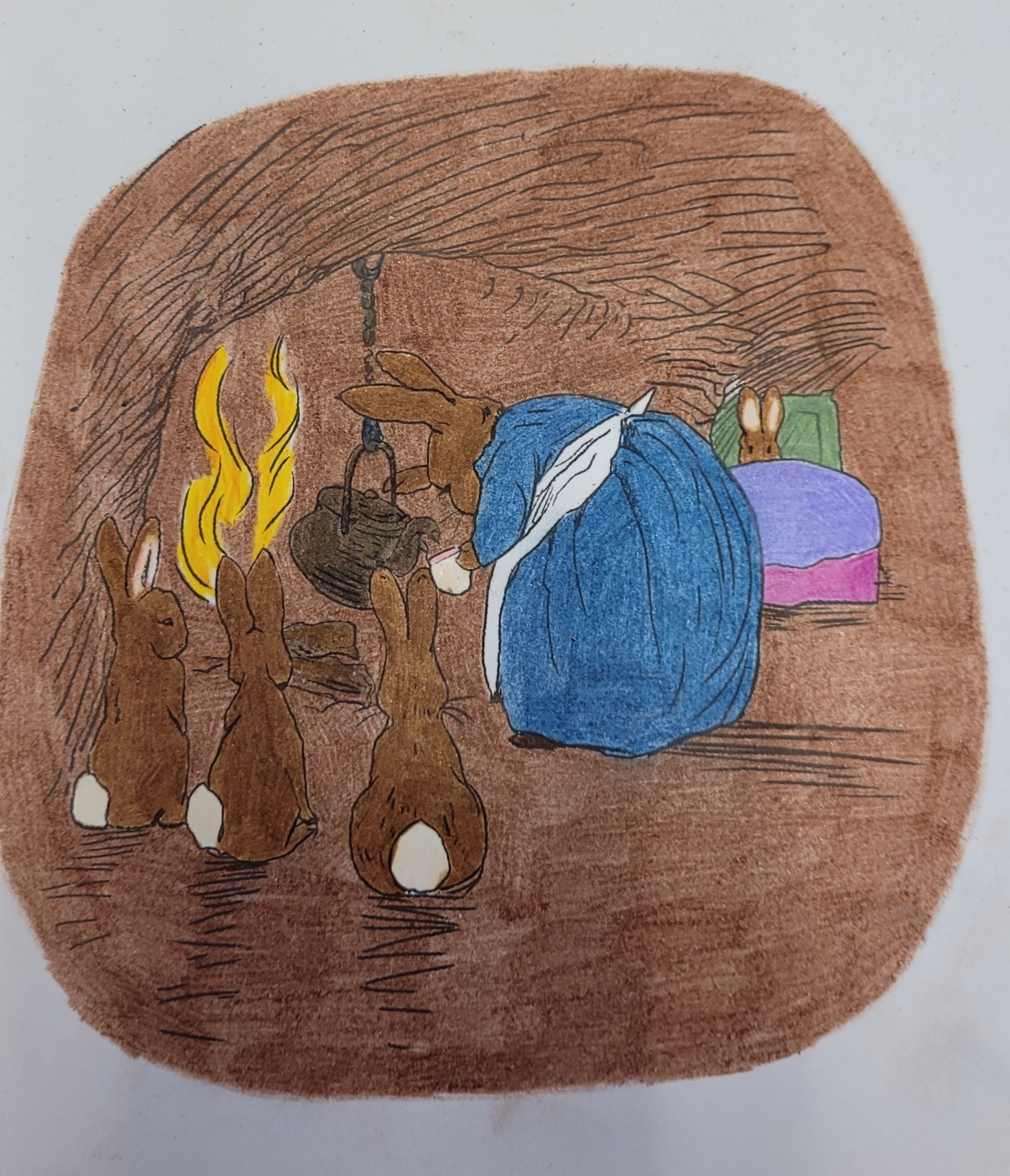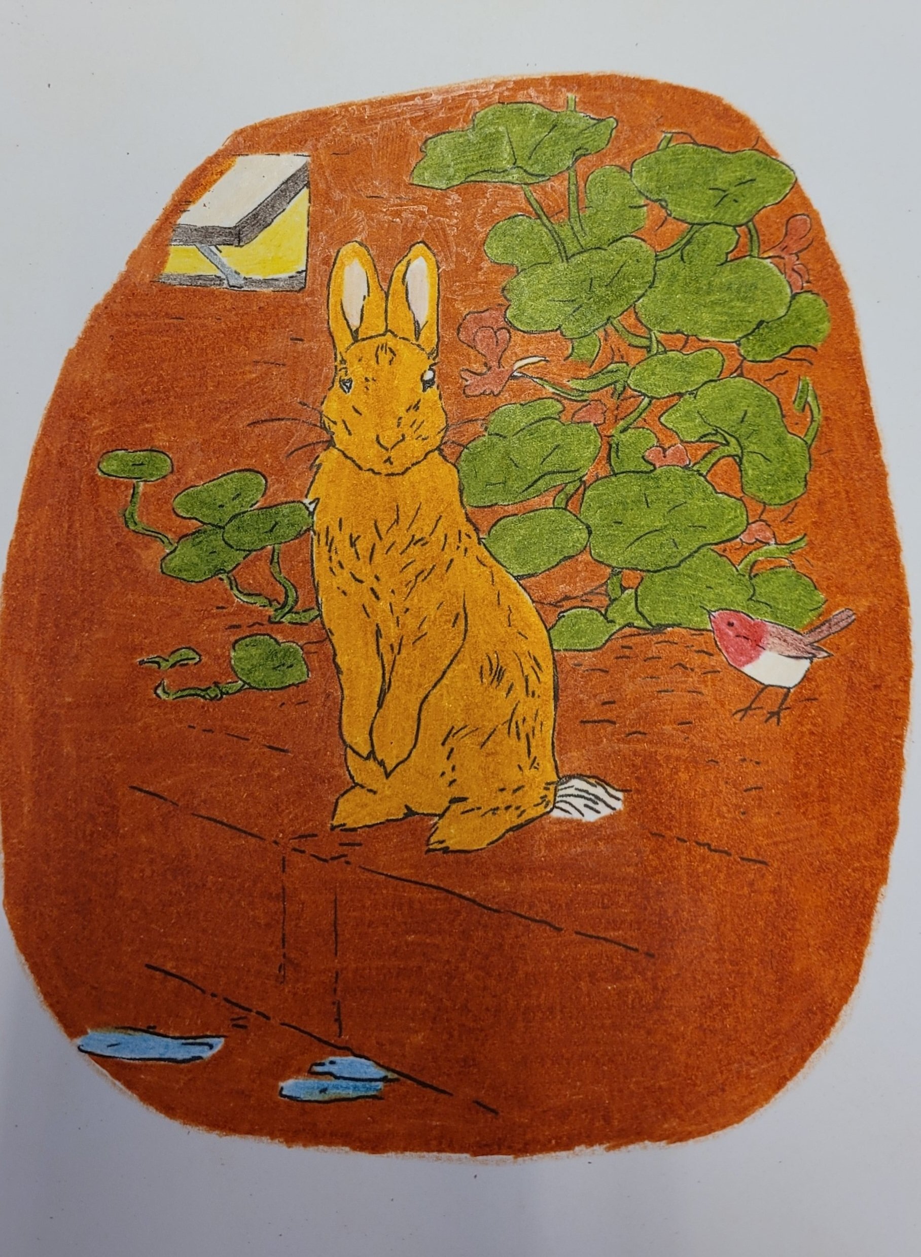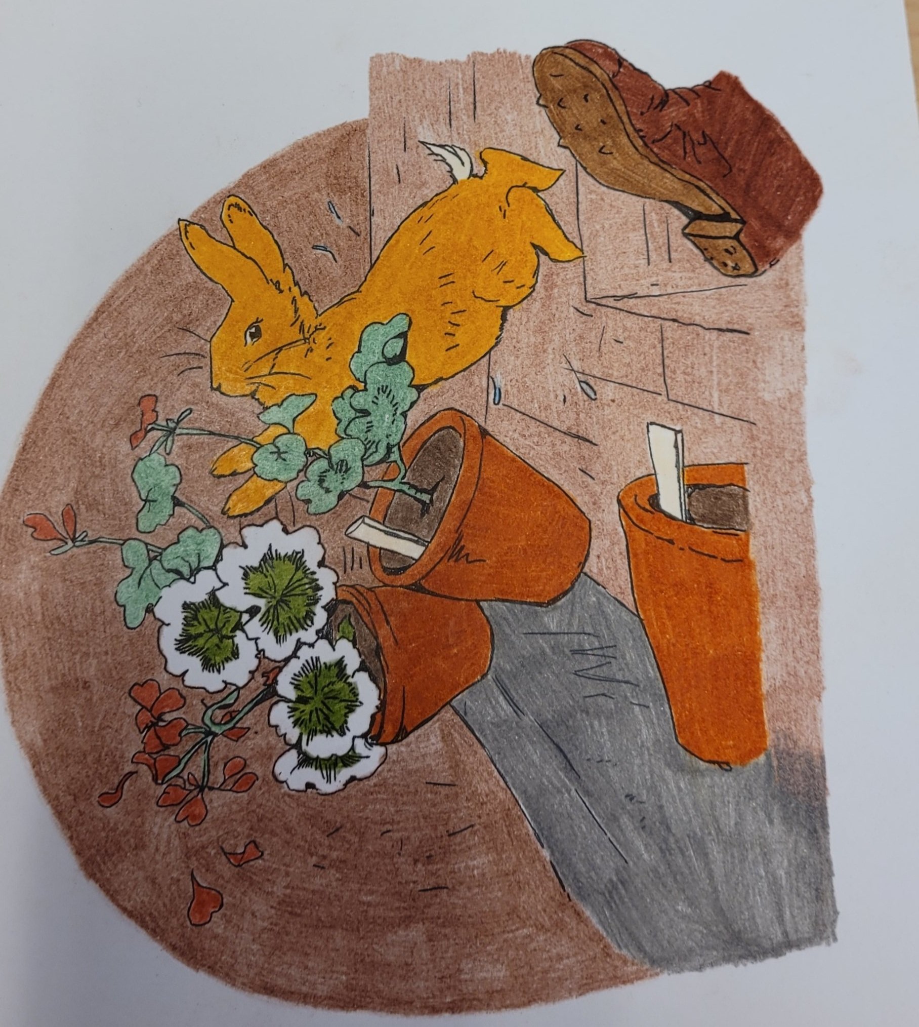 Ja, jeg har fargelagt MYE. Jeg hadde to hefter med «Peter Rabbit «. Jeg har begynt på det andre nå. Tegningene har jeg klistret opp på jobb. Synes de pynter opp. Muligens ser det litt ut som om vi jobber i en barnehage, men det får så være 🐇.