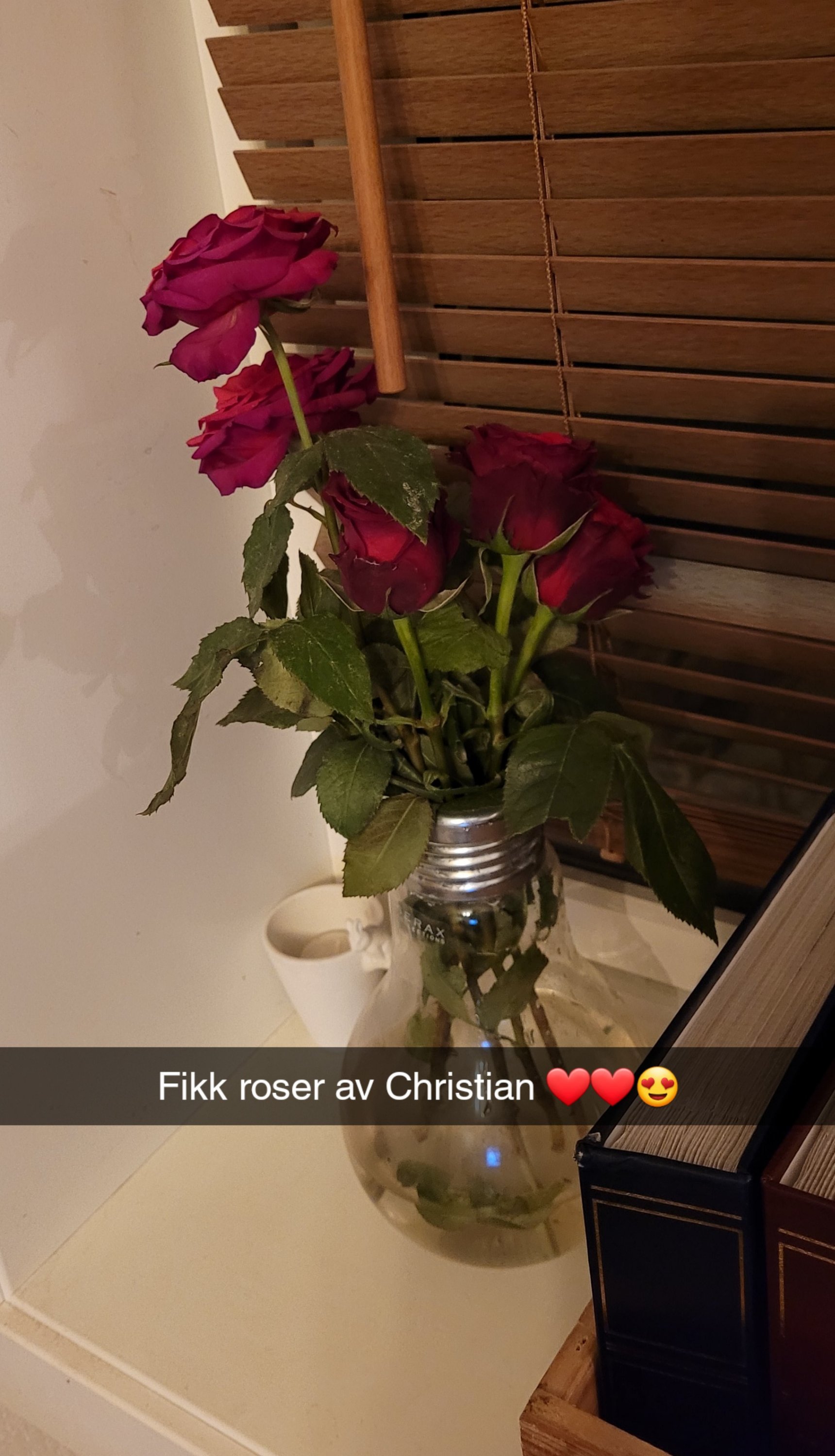 Jeg avslutter med bildet av rosene jeg fikk av Christian i valentinsgave. Jeg fikk også en flaske vin. Kjæresten min er bare best 😍.