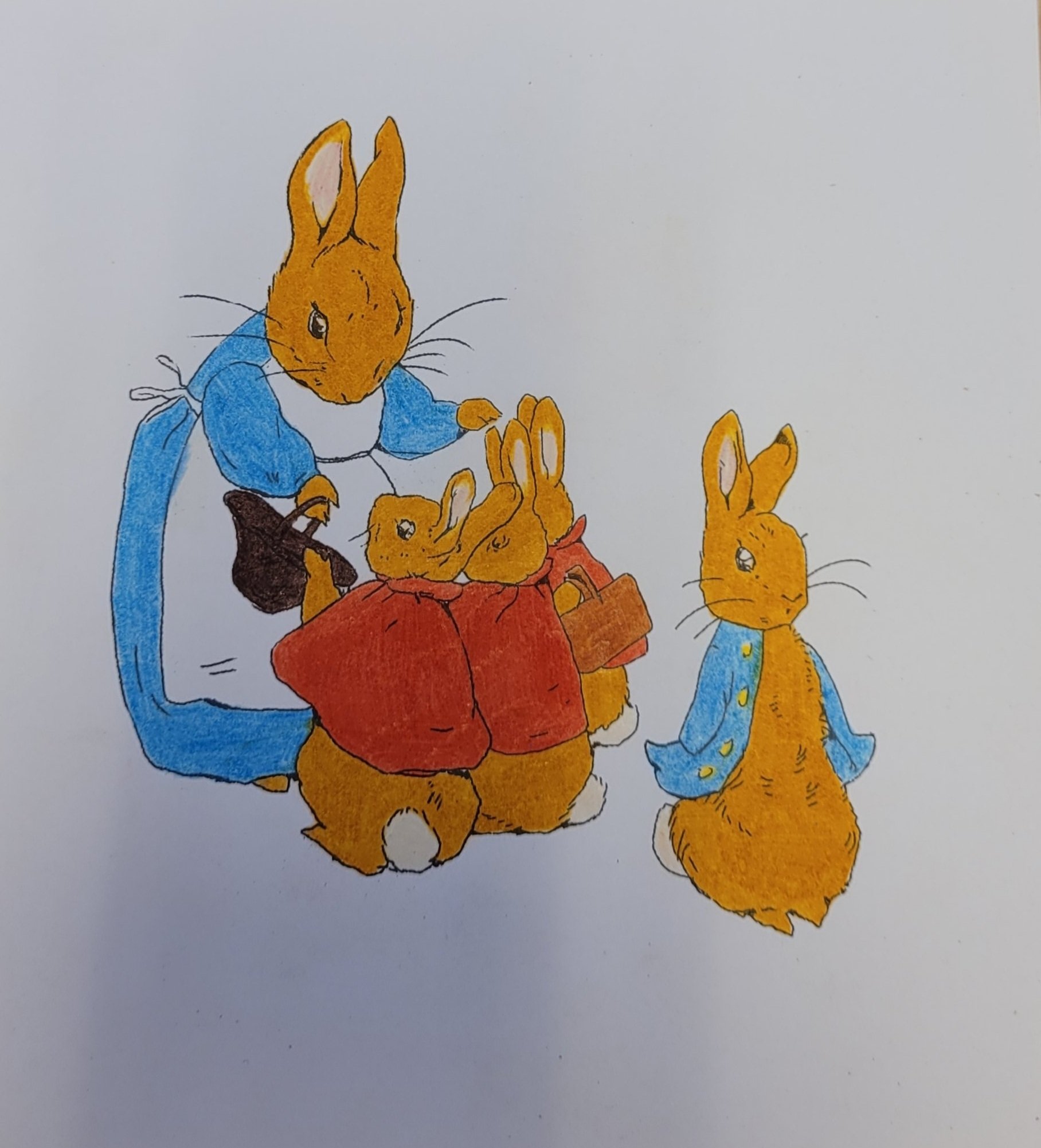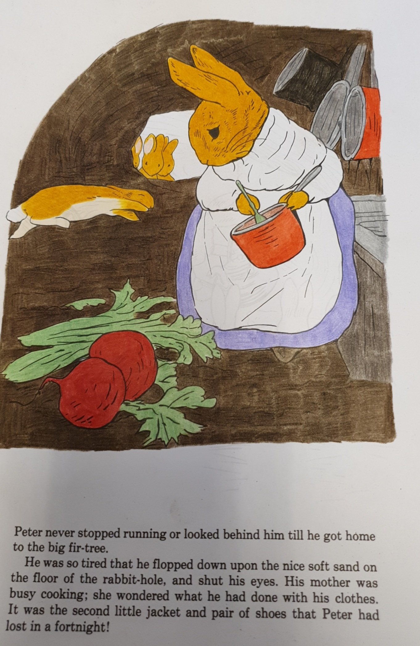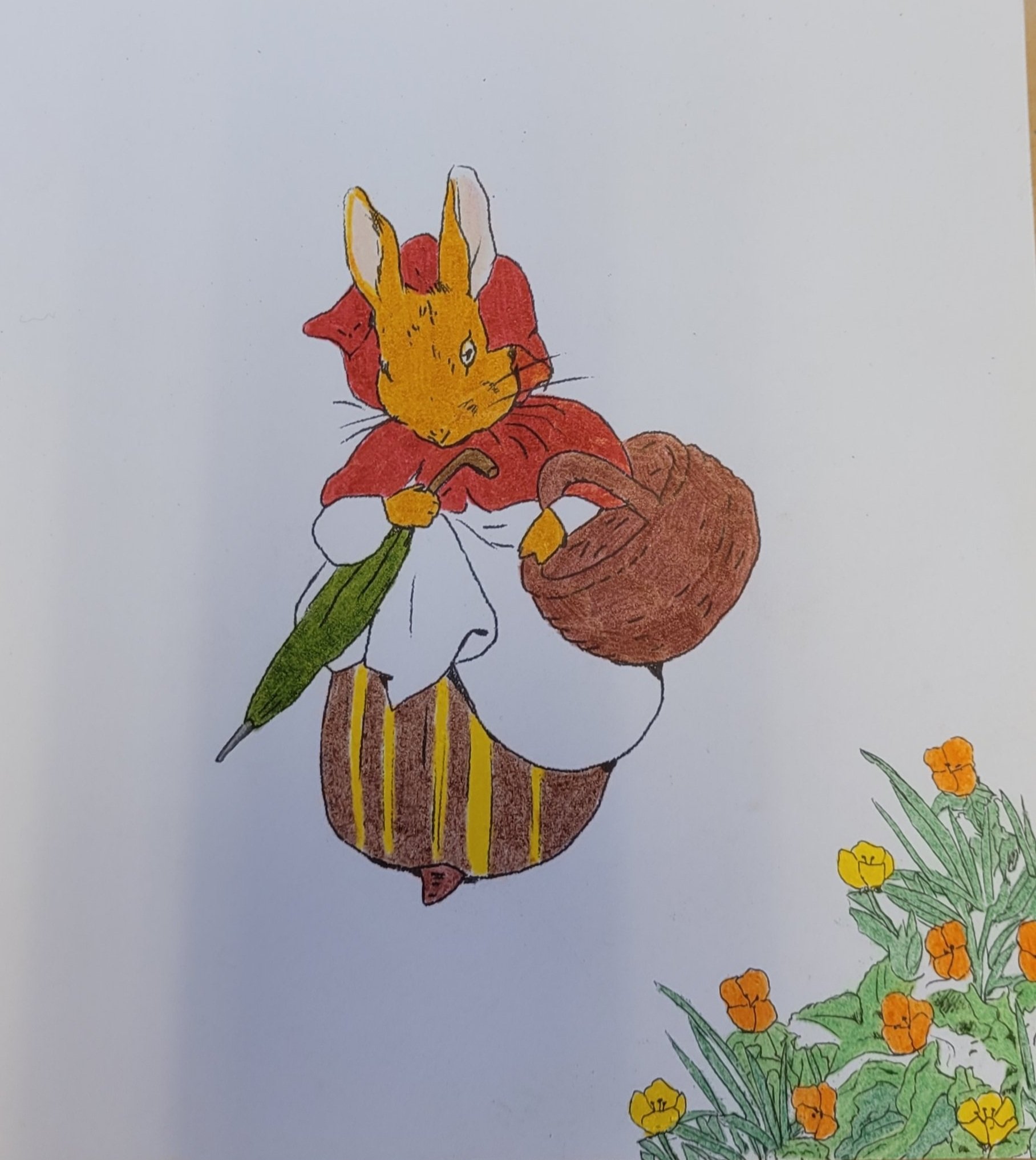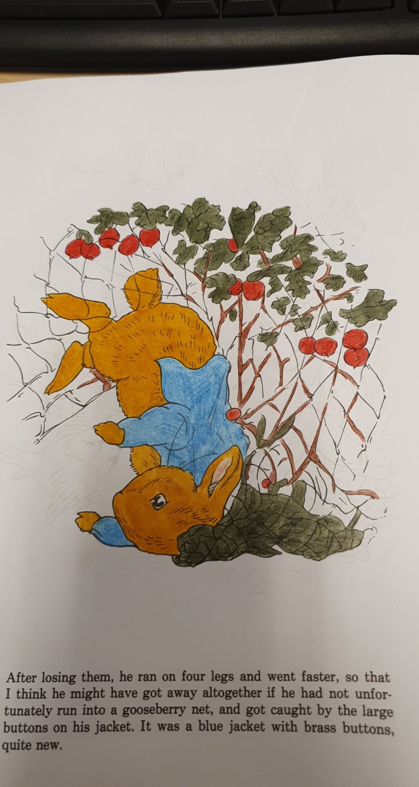 Ja, jeg har fargelagt MYE. Jeg hadde to hefter med «Peter Rabbit «. Jeg har begynt på det andre nå. Tegningene har jeg klistret opp på jobb. Synes de pynter opp. Muligens ser det litt ut som om vi jobber i en barnehage, men det får så være 🐇.