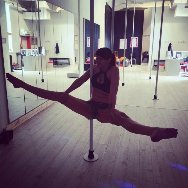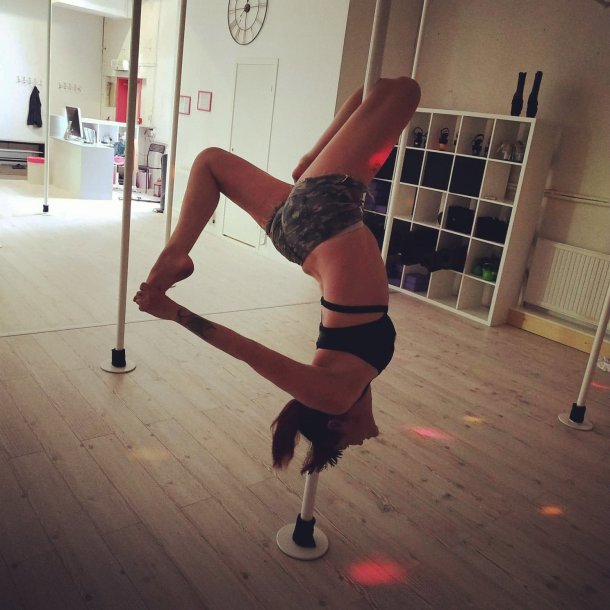 Over til litt trening. For ikke så lenge siden øvde vi på basic invert og handstand på polefit. Vi tok noen bilder.