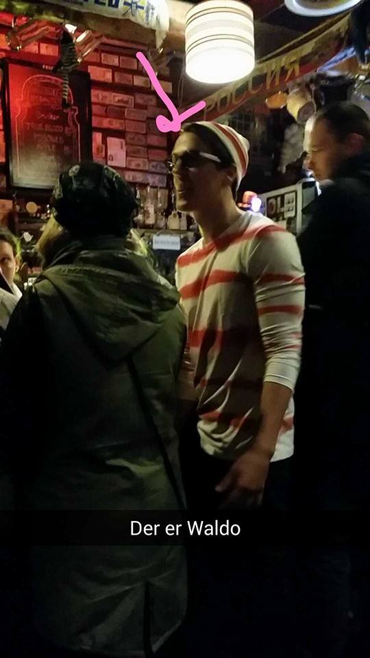 Plutselig, mens vi satt der og drakk øl og skøyt frosker, det var mye sprett i de froskene, dukket Waldo opp, bedre kjent som Willy i fra de populøre billedbøkene «Hvor er Willy». Jeg brøyt selvfølgelig ut i høy støyende latter og klappet opprømt i hendene, slik jeg pleier gjøre når jeg blir gira. Dette var kanskje ikke det skumleste kostymet der, men det var kreativt, og for å være helt ærlig så er jo heller ikke catwoman særlig skummel. Ikke egentlig.