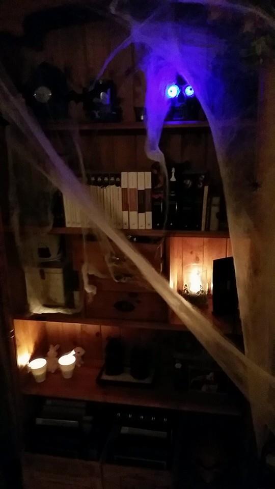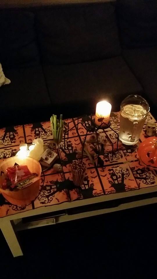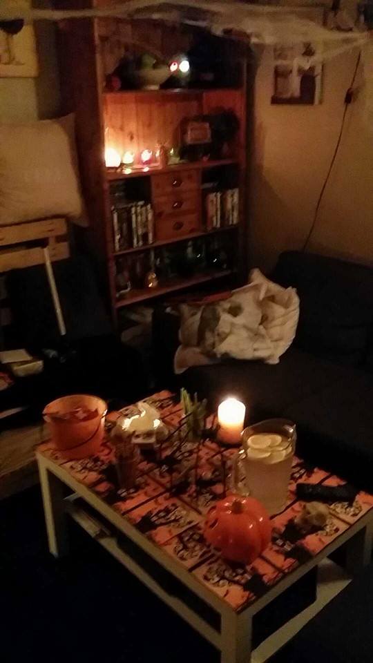 Oktober er den store Halloween-måneden. Vi pleier alltid å feire med brask og bram. Den 28. oktober var det tid for alkohol, masse snop og skumle dekorasjoner. Som alltid, tok jeg litt av. Jeg begynte forberedelsene 14 dager før eventet. Spindelvev med edderkopper ble hengt opp på strategiske plasser, wallstickers prydet veggene og hodeskalle-girlandere pyntet opp i døråpninger.