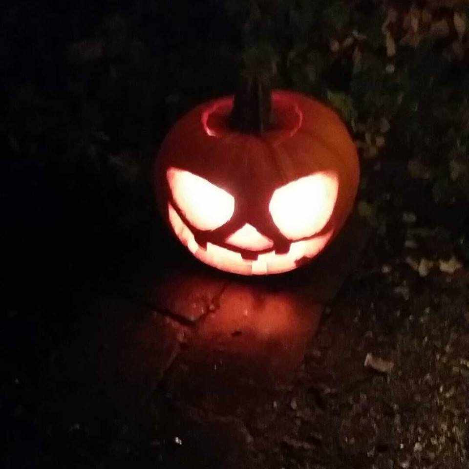 I tillegg til all pynten inne, hadde vi også et gresskar med lys i utenfor inngangsdøra. Den hadde Henia skåret ut. Den ble veldig kul.
