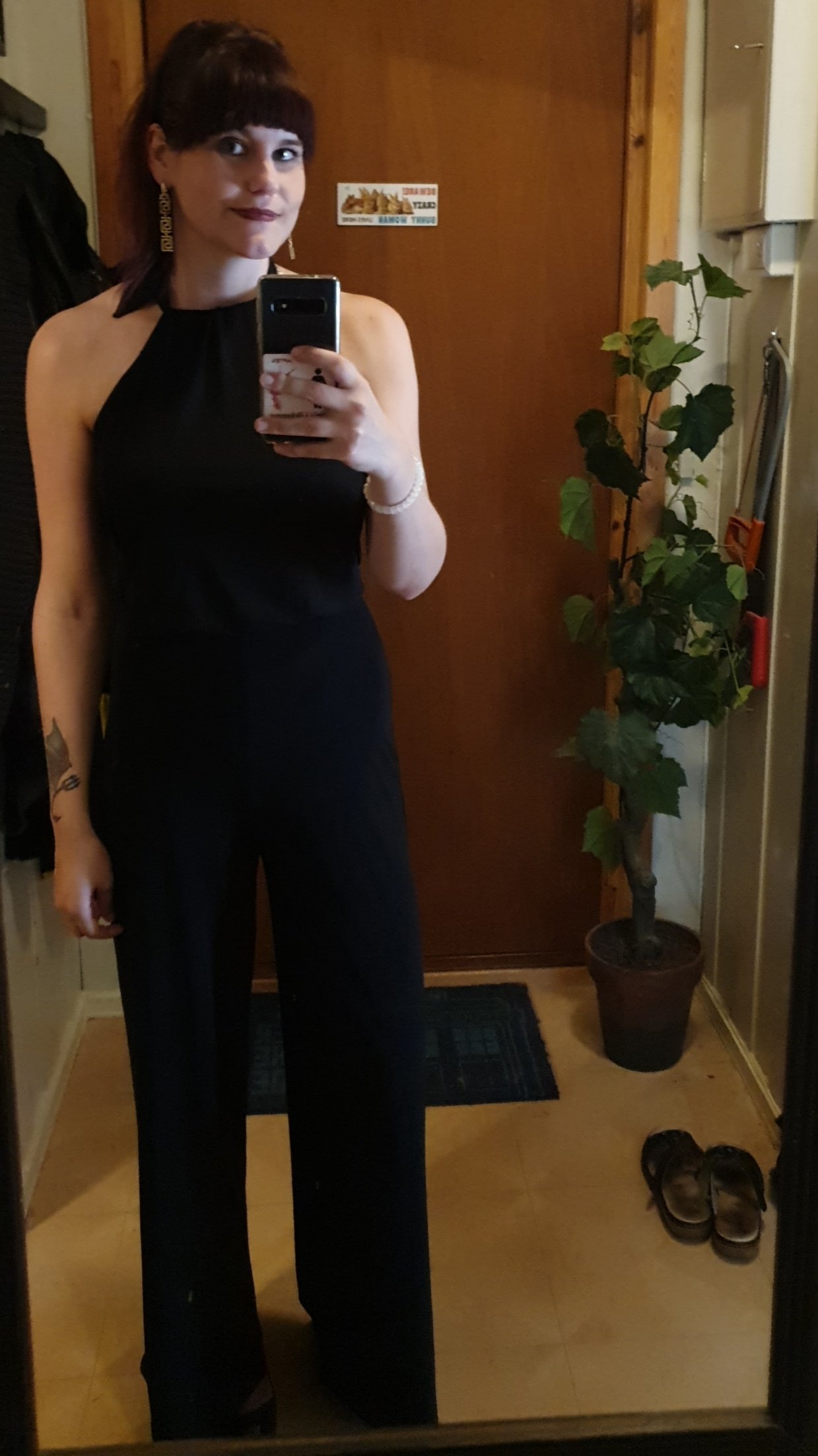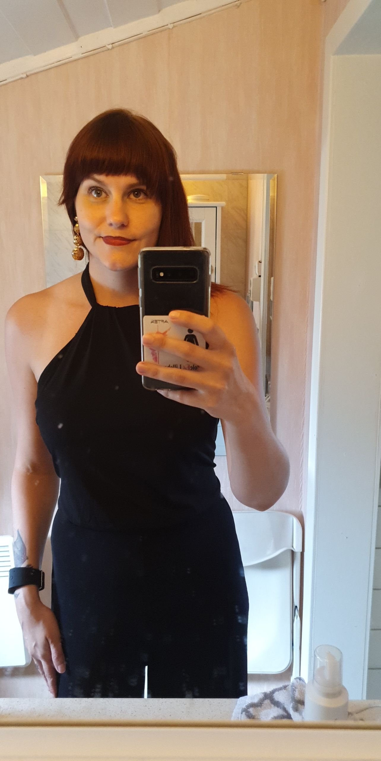 Denne er ganske god synes jeg. Jeg hadde kjøpt meg to nye festplagg i København. Jeg besluttet å ta på meg den nye jumpsuiten. Ja den er ganske utfordrende (mye pupp), men den er veldig festelig. Jeg angret på at jeg ikke hadde med meg noen nipplecovers, men det viser seg at gnagsårplaster gjør samme nytten. Hvem hadde trodd.
