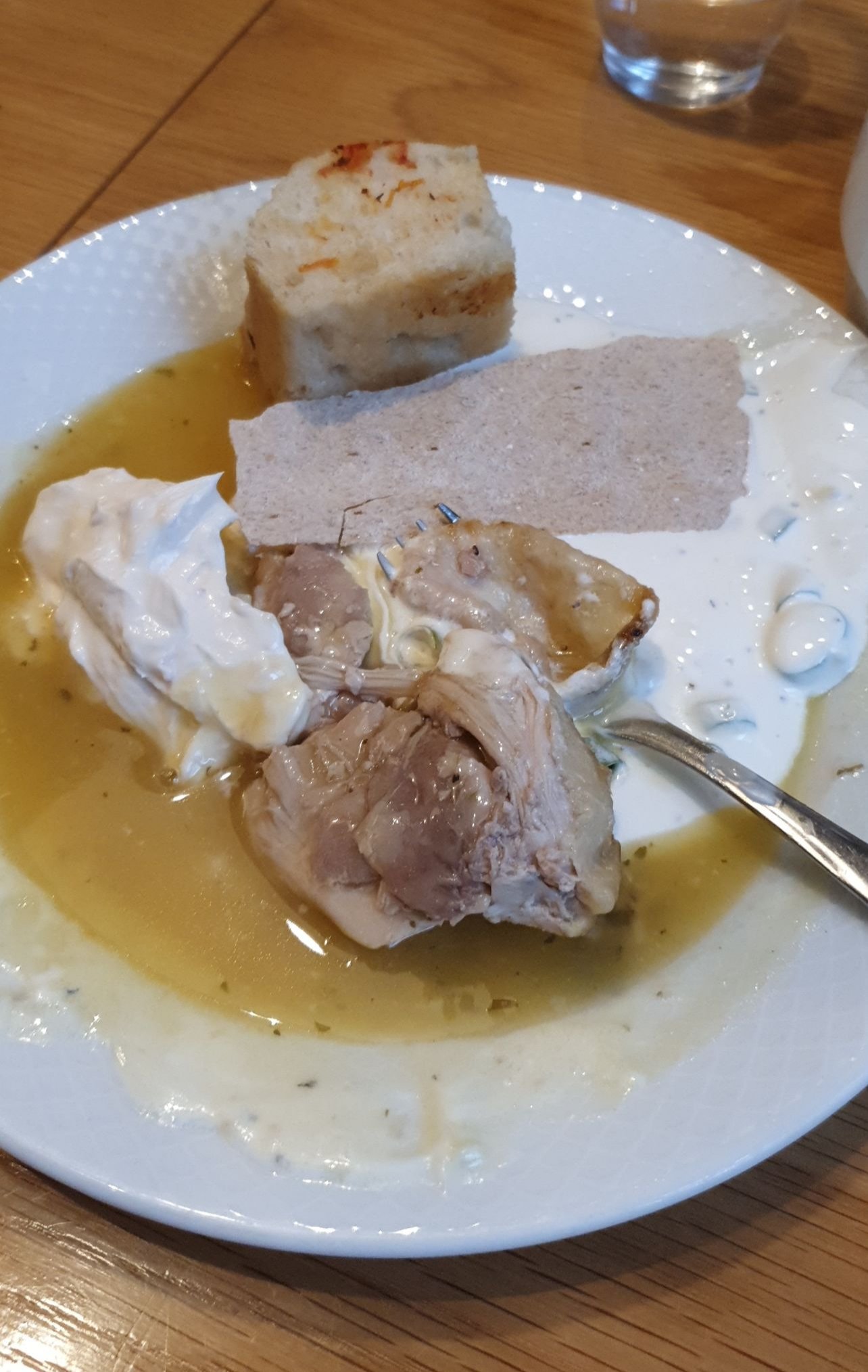 Sulten begynte å melde seg, og vi fant ut at vi skulle besøke den store Mathallen. Der var det veldig mye spennende restauranter. Jeg gikk for Fish&Chips og en Corona. Det var supergodt.