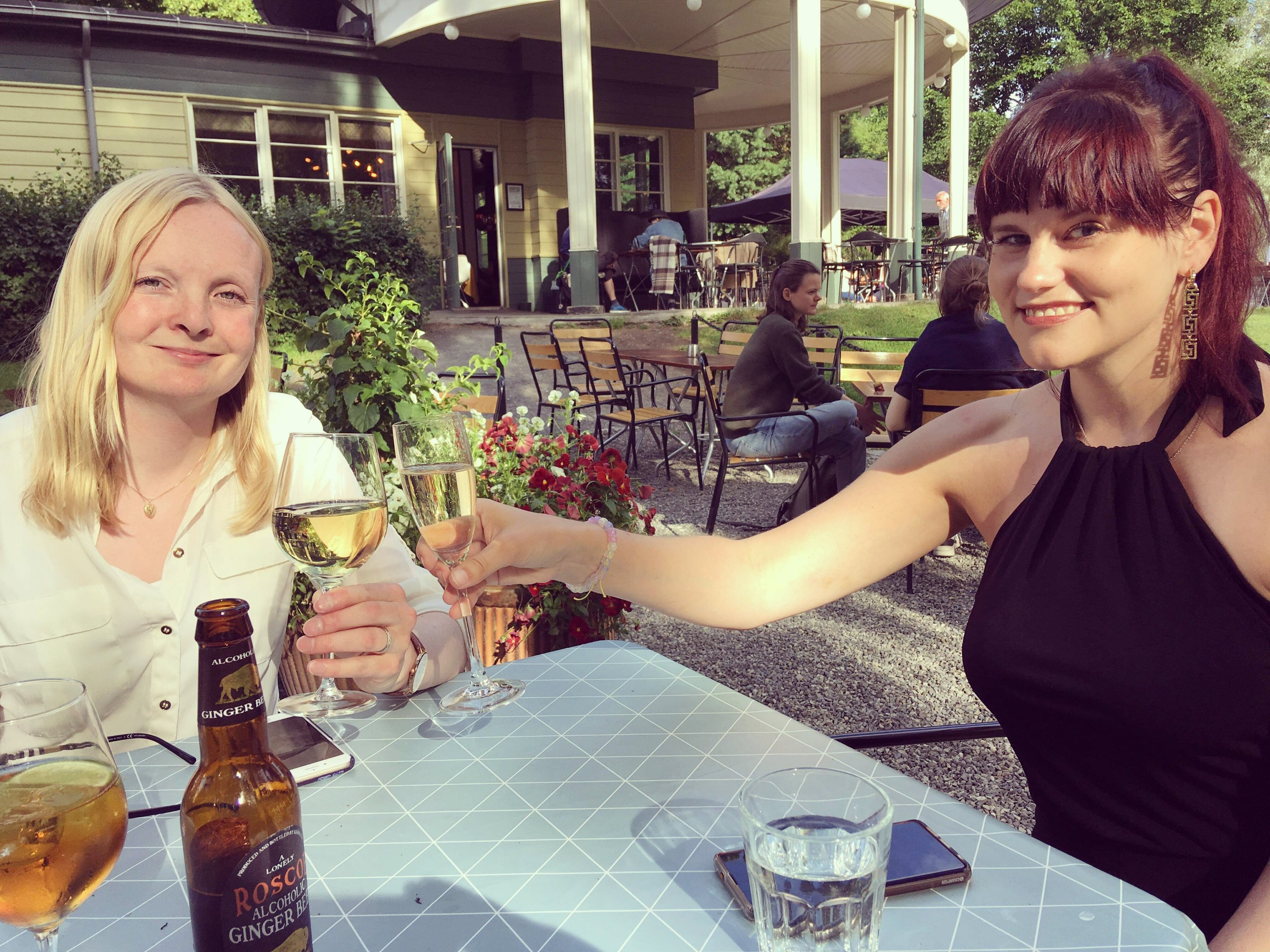 Vi tok også turen innom boblebad/spa-avdelingen. Jeg hadde lyst til å drikke bobler i boblene, men det var dessverre ikke lov på denne båten. Det var visst på Queen of Scandinavia man kunne gjøre dette. Typisk. Ikke var det noe kasino på båten heller. Lurer på om det er det på den andre. Etter at vi hadde plasket litt rundt, ordnet vi oss og gjorde oss klare til middagen. Vi hadde litt tid å slå ihjel, så vi slo oss ned i baren og bestilte oss noe å drikke.