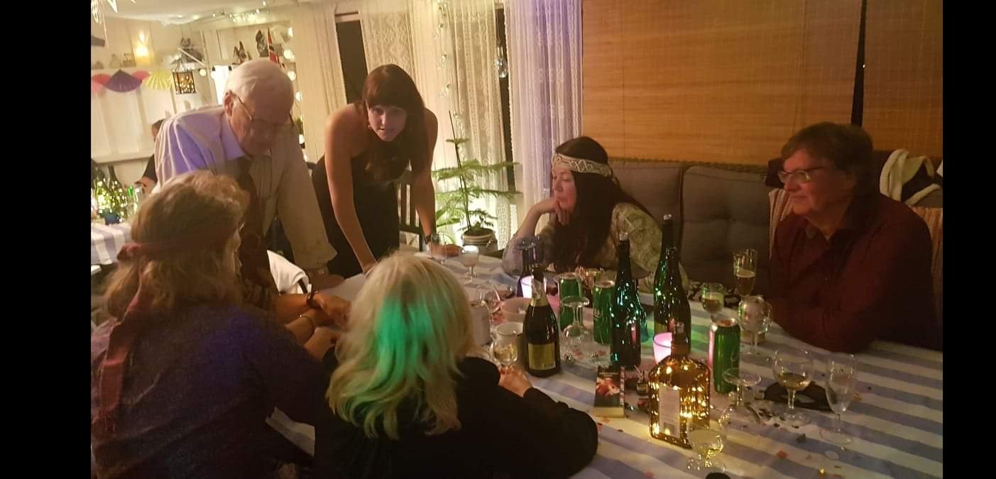 Alle fikk utdelt nyttårshatter 🥳. Maten var fantastisk. Vinen var god også. Det var nok av begge deler.