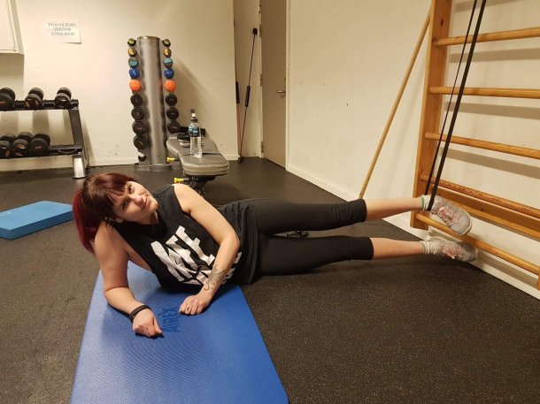 Jeg øver på å få sterkere bein. Det er viktig når man driver med polefit.