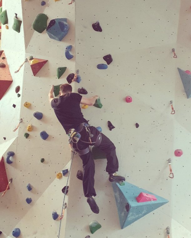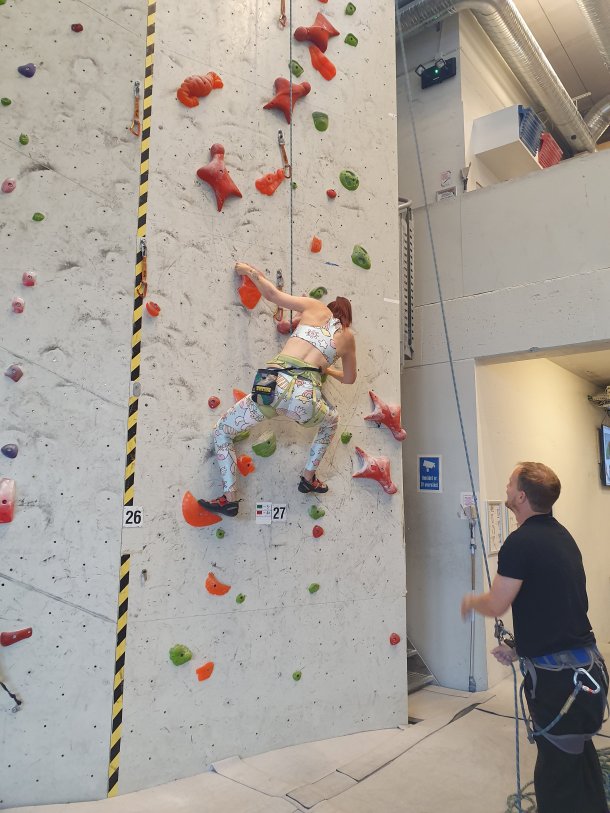 Så var det min tur til å prøve meg i veggen. Det var ikke like grasiøs for å si det sånn.