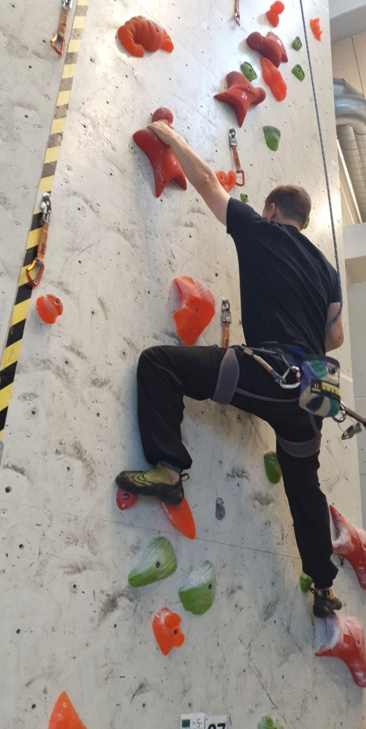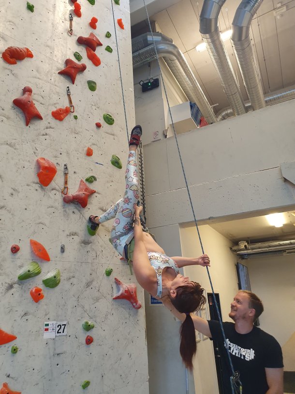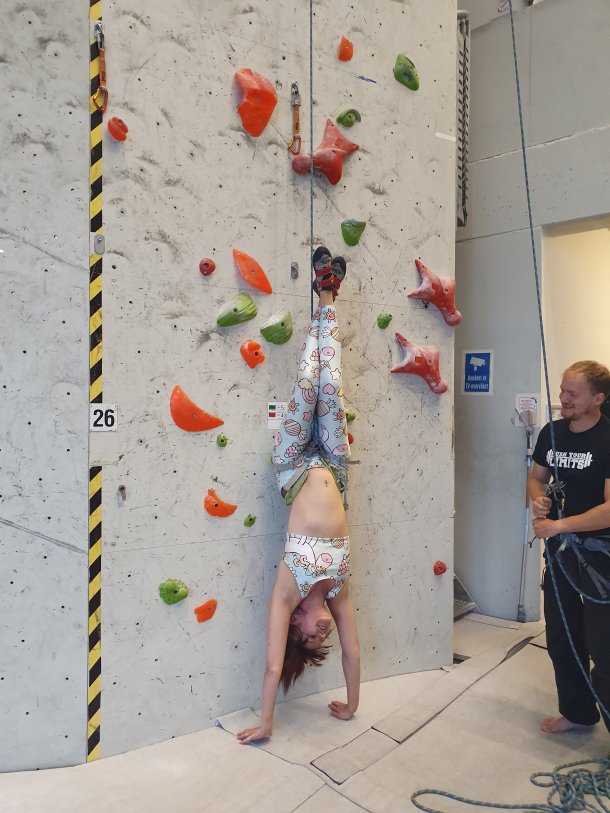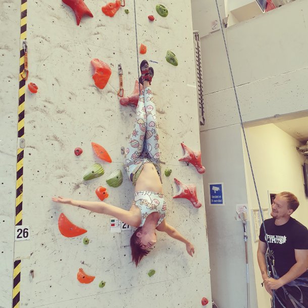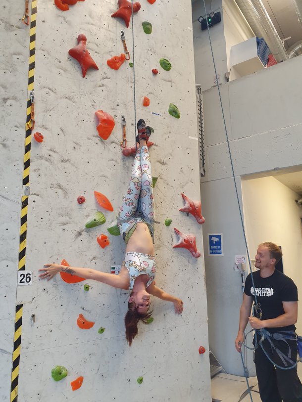 Jeg prøvde på på å klatre litt opp for så å være opp ned i veggen. Litt polestyle.